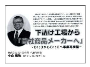 資料 ③ 「下請け工場から自社商品メーカーへ」(淀川製作所:小倉 庸敬氏)